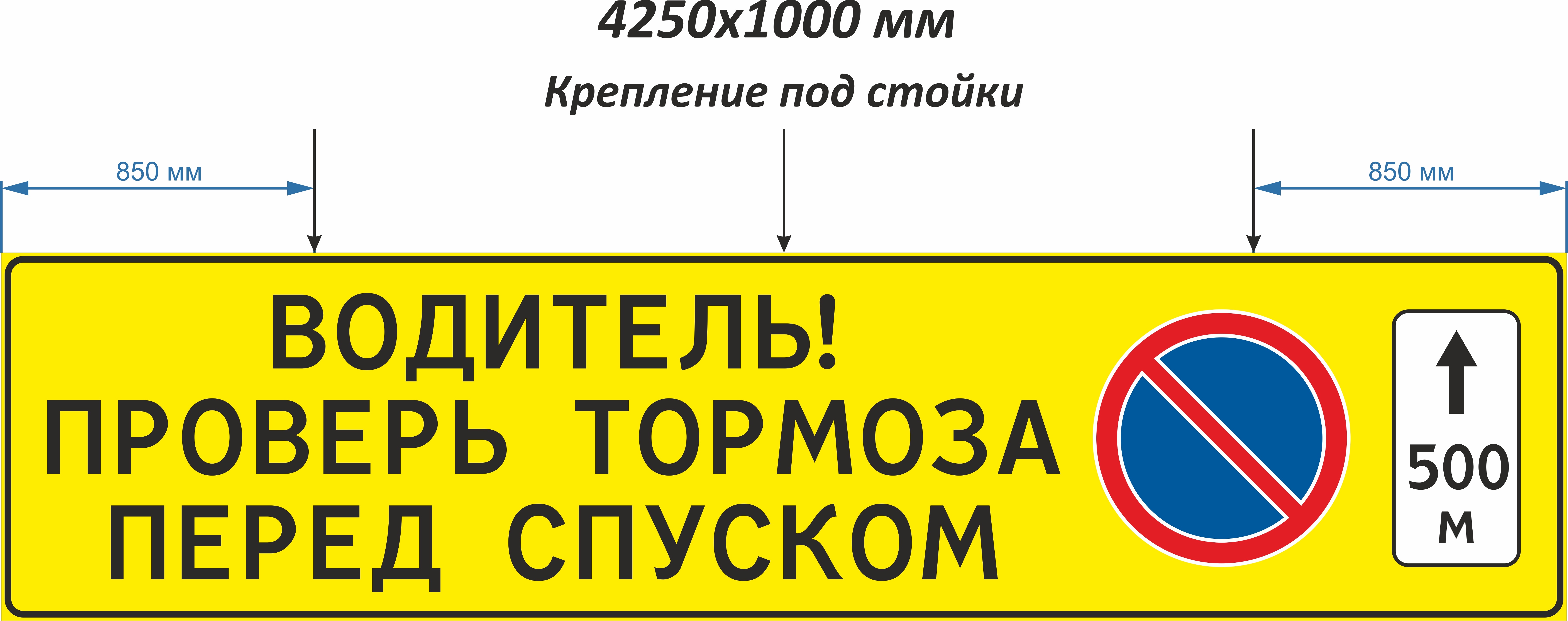 Дор. знак индивидуального проектирования (4 250х1 000, Металл 0,8 мм оц., пленка световозвращающая типа Б, Рама под 3 стойки, ГОСТ Р 52290-2024)
